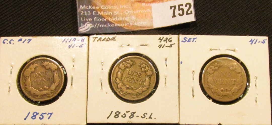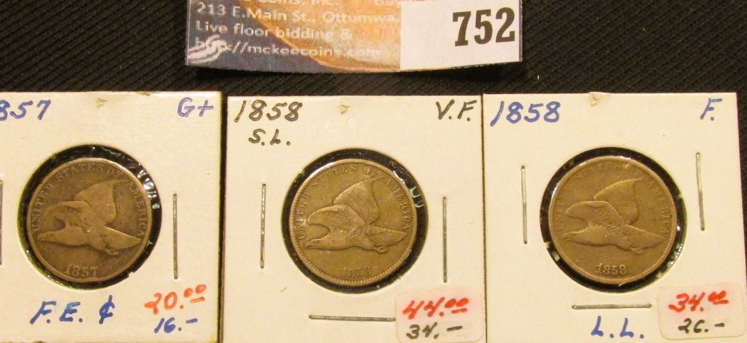 (3) 1857-58 U.S. Flying Eagle Cents with grades up to Very Fine.