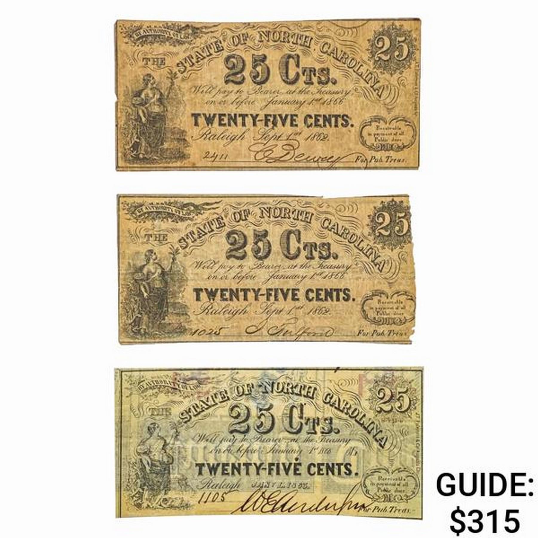 [3] 1862&1863 25C State of N. Carolina Frac. Notes