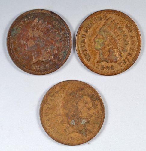 3-1864 BR INDIAN HEAD CENTS "GRADING SET" (AG,GOOD,VG)