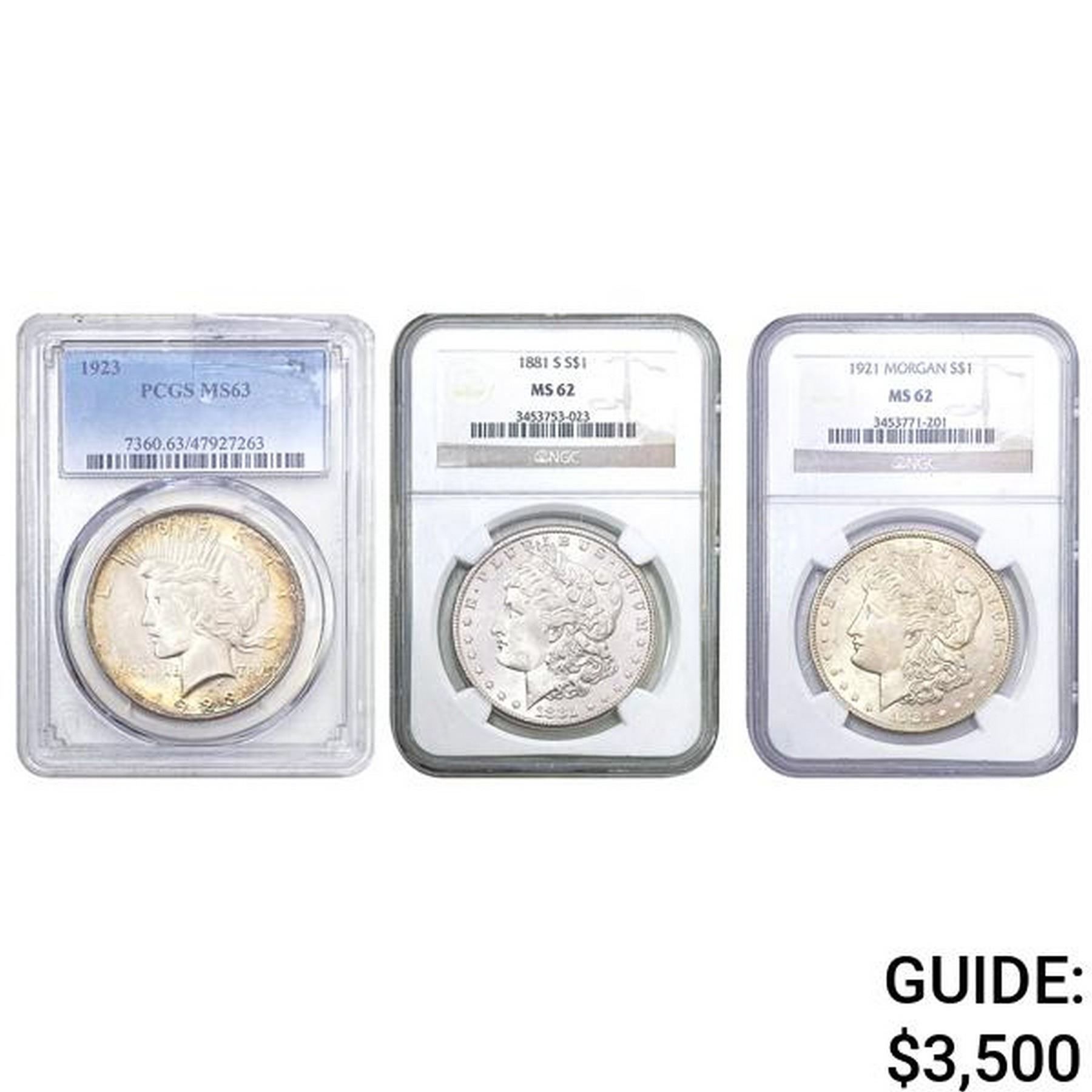 [3]1881-1923 Silver Morgan/Peace Dollars NGC/PCGS MS64/67