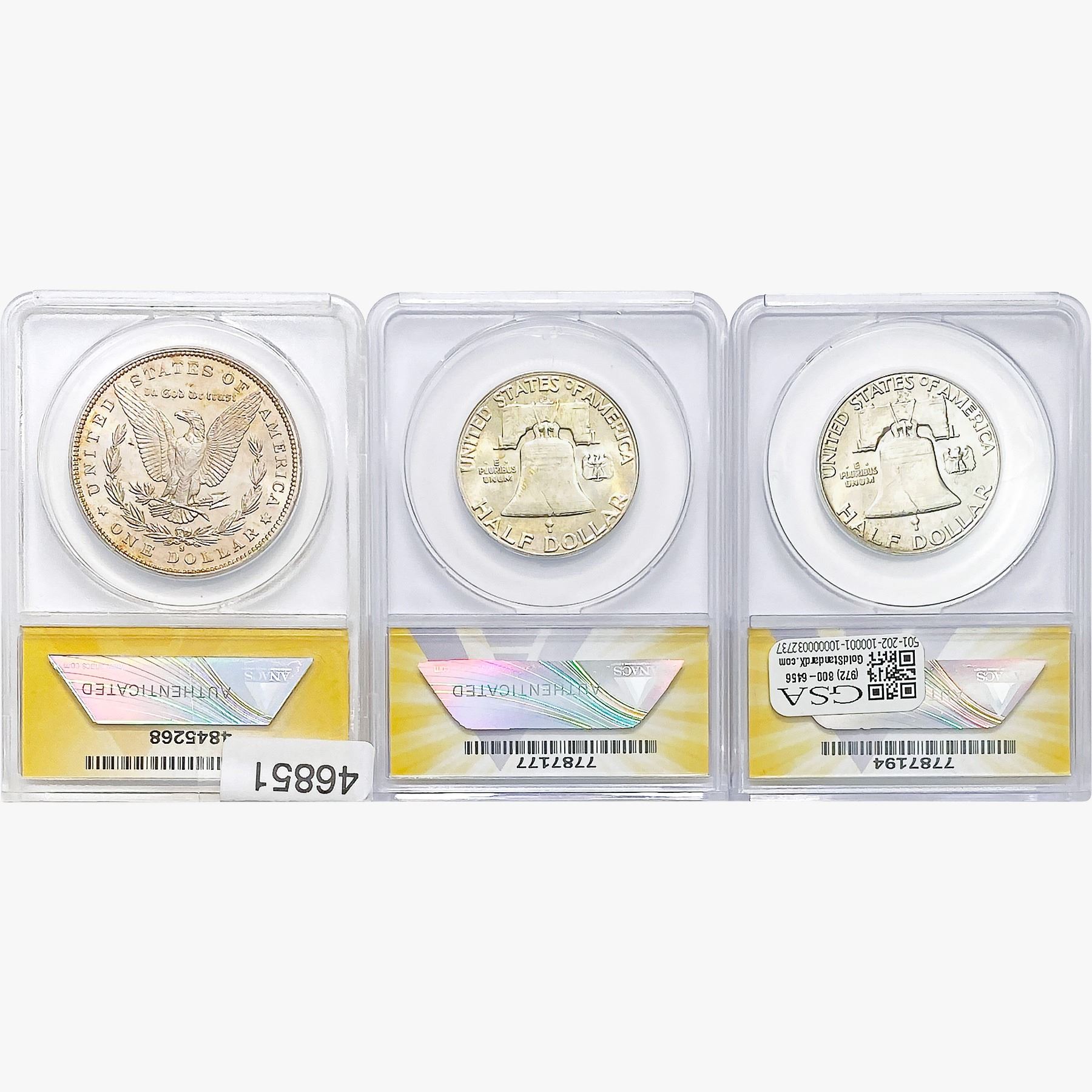 [3] 1881-1954 $1 Morgan Coin, [2] 50C Franklin Coin ANACS
