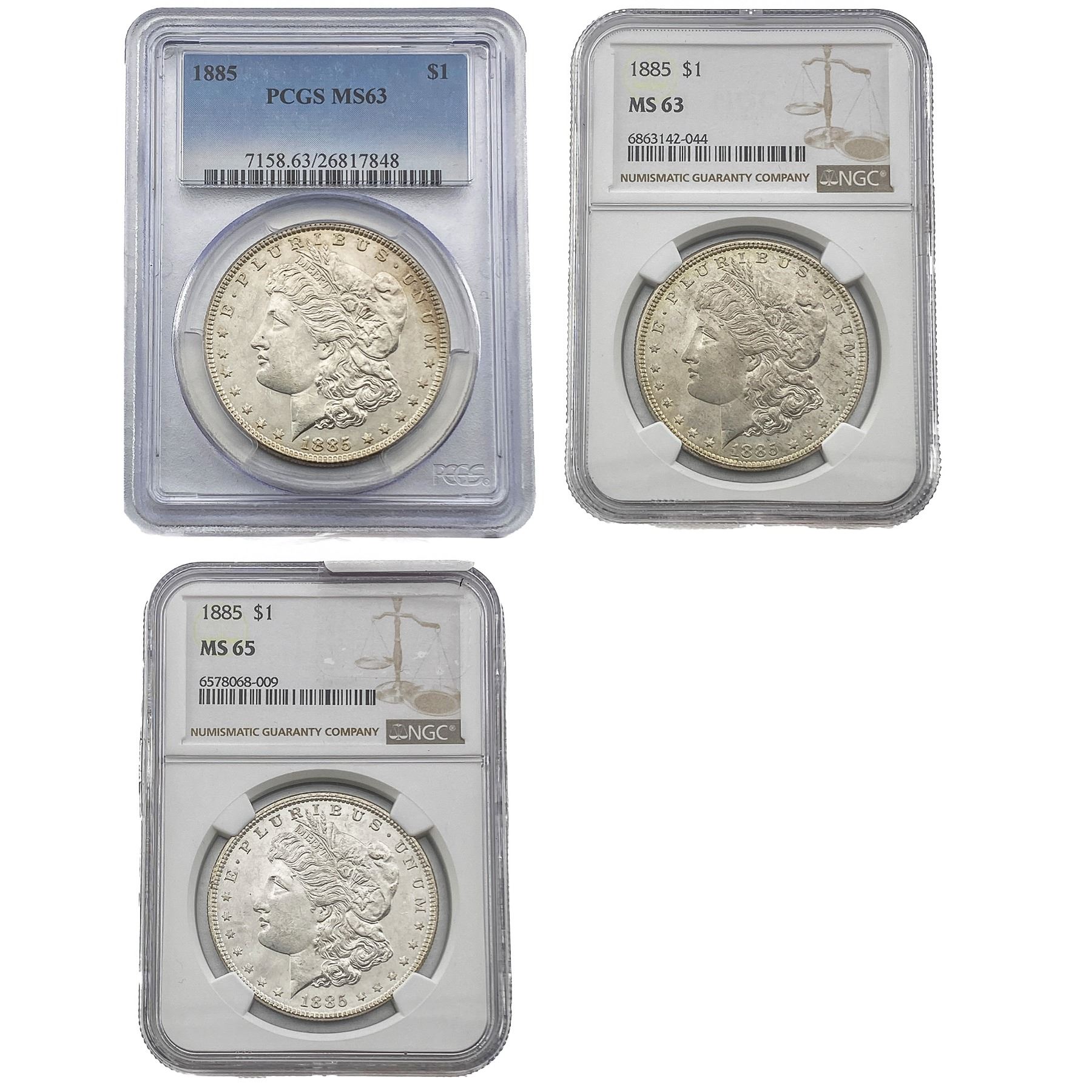 [3]1885 Morgan Silver Dollar NGC/PCGS MS63-65