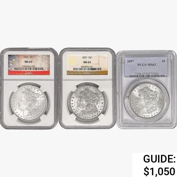 [3] 1896 & 1897 Morgan Silver Dollar NGC MS63