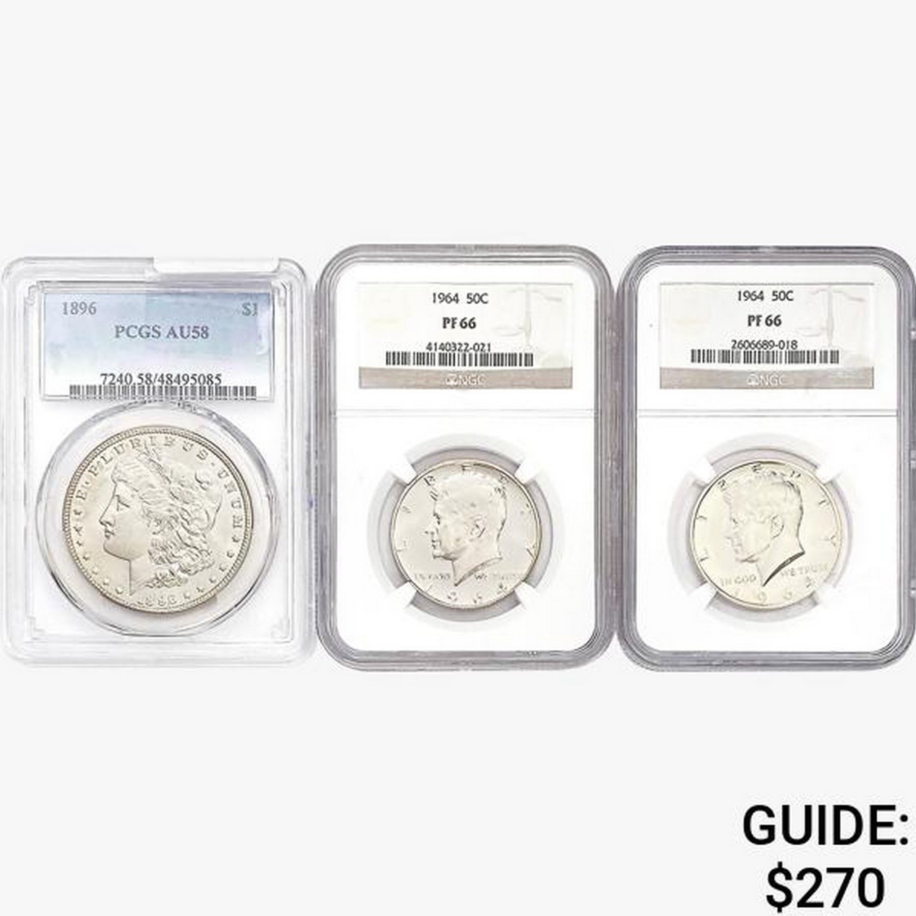 [3] 1896&1964 2 50C, 1 $1 NGC/PCGS AU/PF58/66