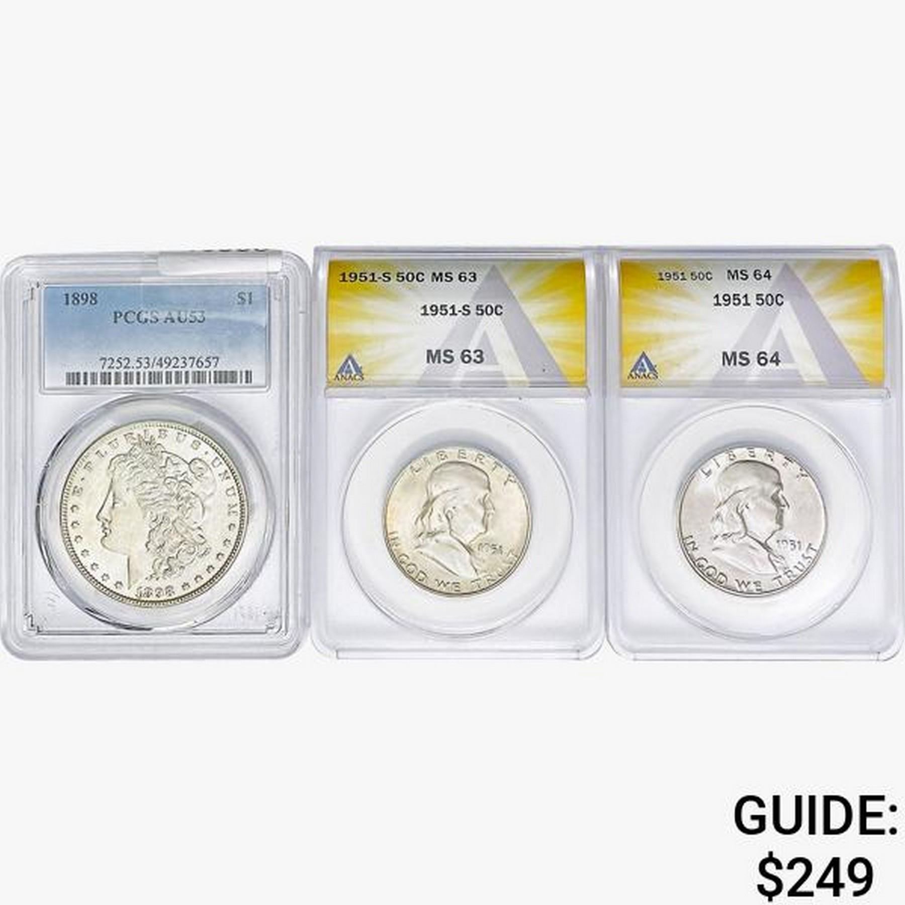 [3] 1898-1951 $1 Morgan Coin, [2] 50C Franklin Coin