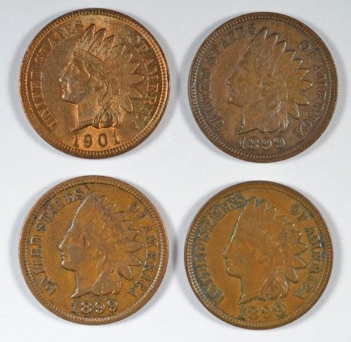 3-1899 "GRADING SET" (FINE,VF,XF) & 1901 CH BU INDIAN HEAD CENTS
