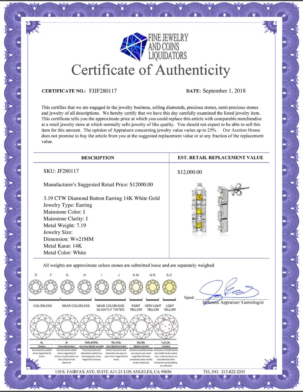 REF-158N3Y - JF280117 ---- 3.19 CTW White Round Diamond & Baguette Earring 14K White Gold