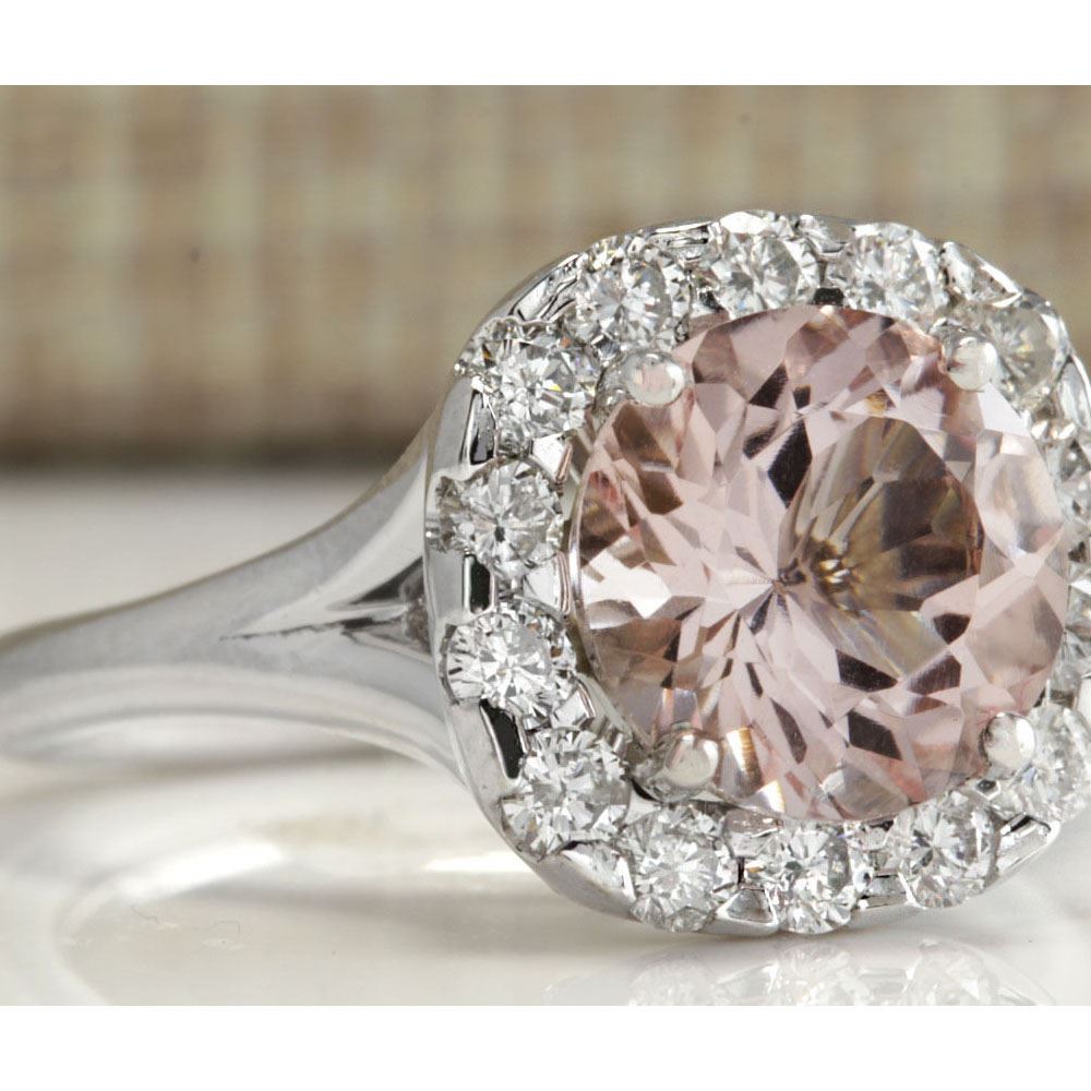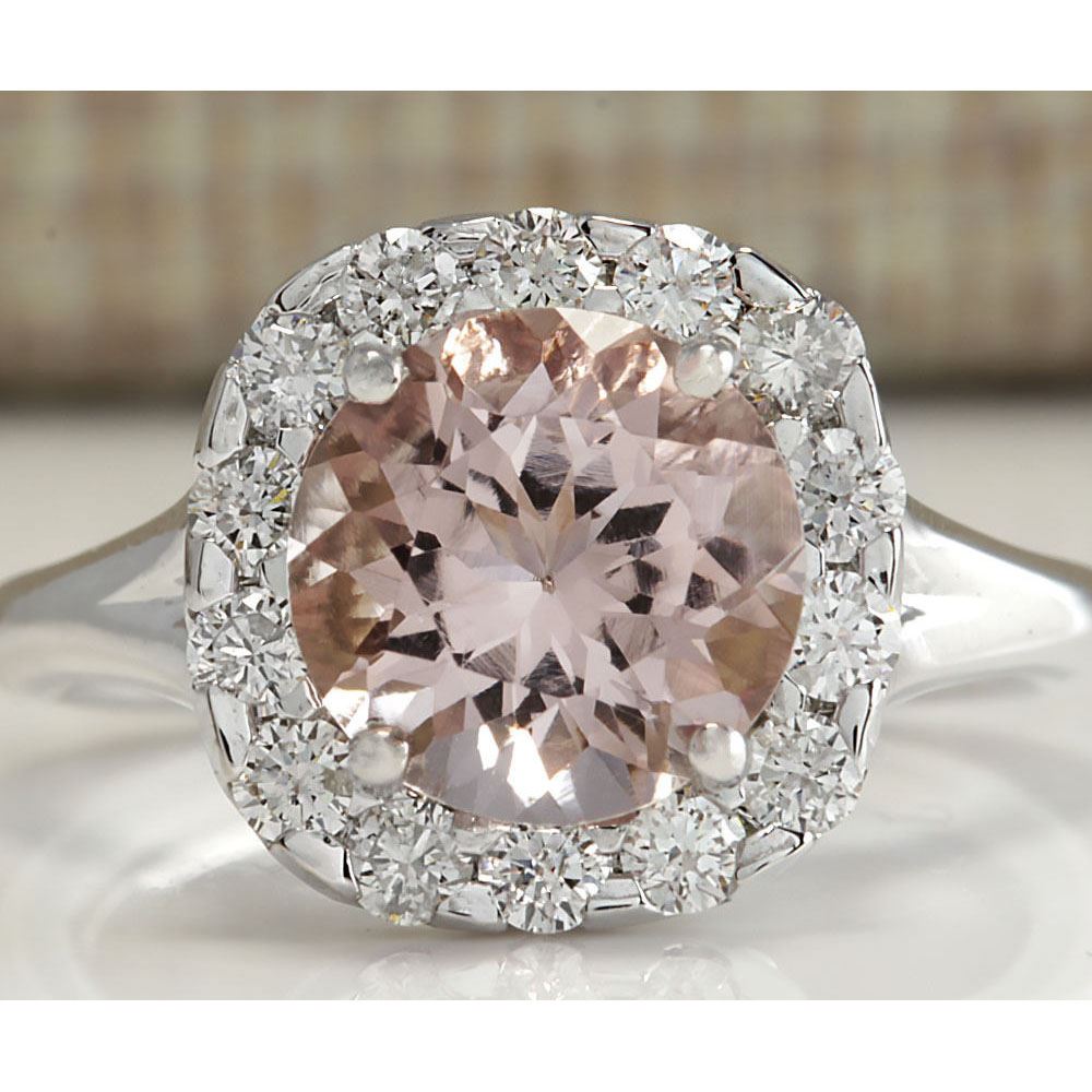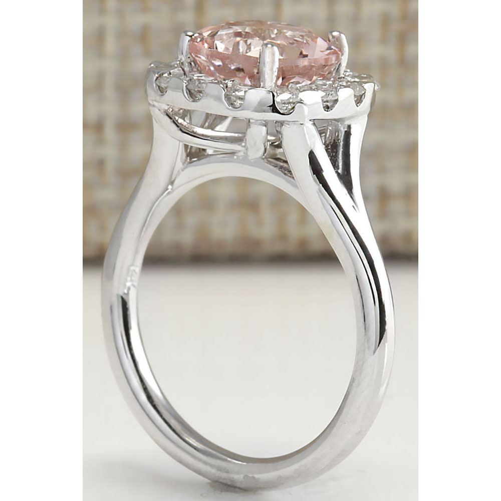 3.19 CTW Natural Peach Morganite And Diamond Ring In 18K Solid White Gold