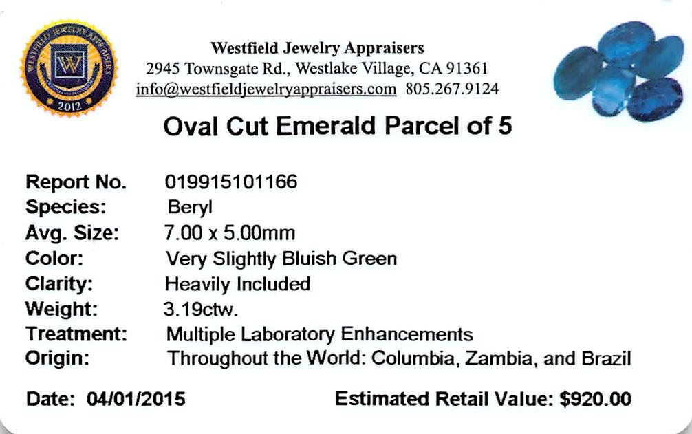 One 3.19 ctw Oval Mixed Emerald Parcel.