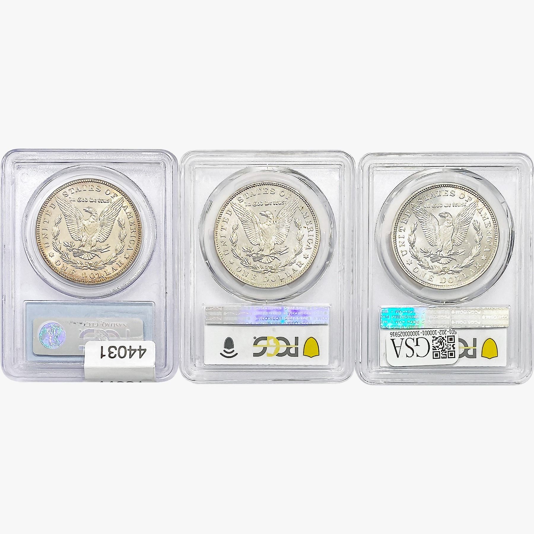 e. Coins sold referencing a third-party grading service are sold “AS IS” without any express or implied warranty, except for a guarantee by GSA that they are genuine. Removal or alteration of the holder, voids all of Bidder’s claims concerning that Product. Certain warranties may be available from the grading services and Bidders are referred to them for further details: Numismatic Guaranty Corporation (NGC), PO Box 4776, Sarasota, FL 34230, www.ngccoin.com/services/writtenguarantee.asp; Professional Coin Grading Services (PCGS), PO Box 9458, Newport Beach, CA 92658, www.pcgs.com/guarantee.html; ANACS, 6555 S. Kenton St., Ste. 303, Englewood, CO 80111; and Independent Coin Grading Co. (ICG), 7901 East Bellview, Ave., Suite 50, Englewood, CO 80111.
