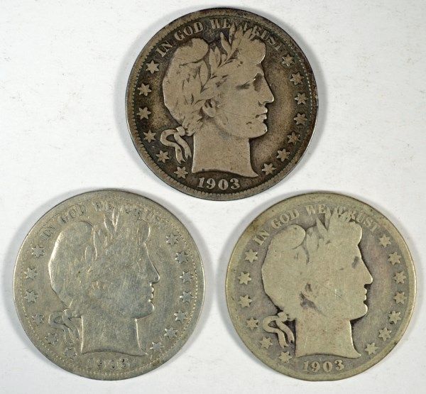 (3) 1903-S BARBER HALF DOLLARS "GRADING SET" (AG,GOOD,VG)