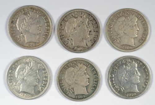 3-1909 "GRADING SET" (FINE,VF,XF) & 3-1910 "GRADING SET" (VG,FINE,VF) BARBER