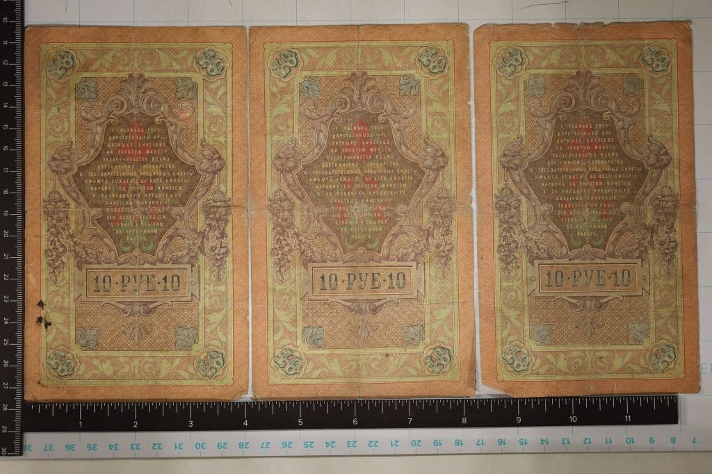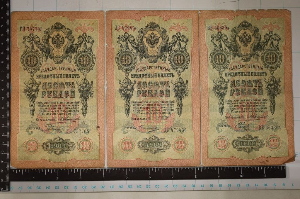 3-1909 RUSSIA 10 KOPEK BILLS, RIPS AND TEARS NOTED