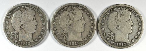 3-1912-S BARBER HALF DOLLARS "GRADING SET" (GOOD,VG,FINE)