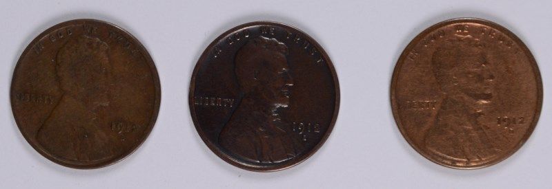 3-1912-S LINCOLN CENTS "GRADING SET" (GOOD, VG, FINE)