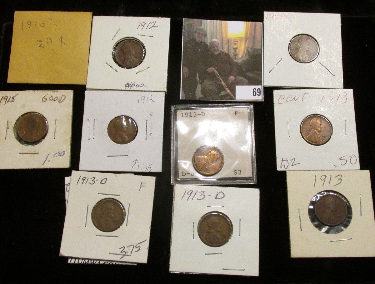 (3) 1912P, (2) 13P, (3) 13D, & (2) 15P Lincoln Cents, grades up to Fine.