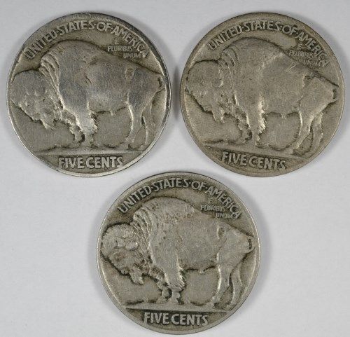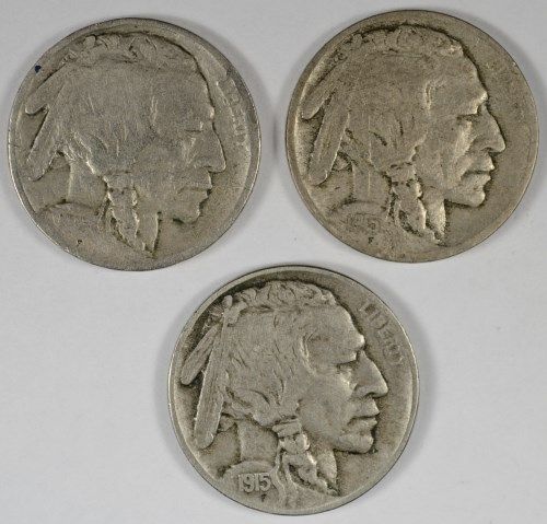 3- 1915 BUFFALO NICKELS "GRADING SET" (GOOD, VG, FINE)