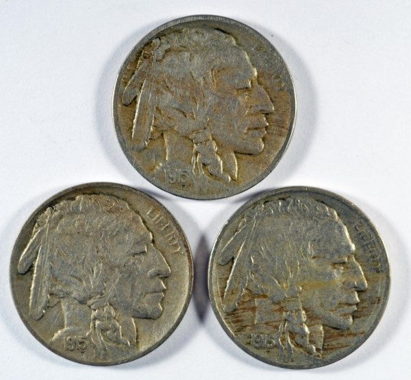 3-1915 BUFFALO NICKELS "GRADING SET" (VG,FINE,XF)