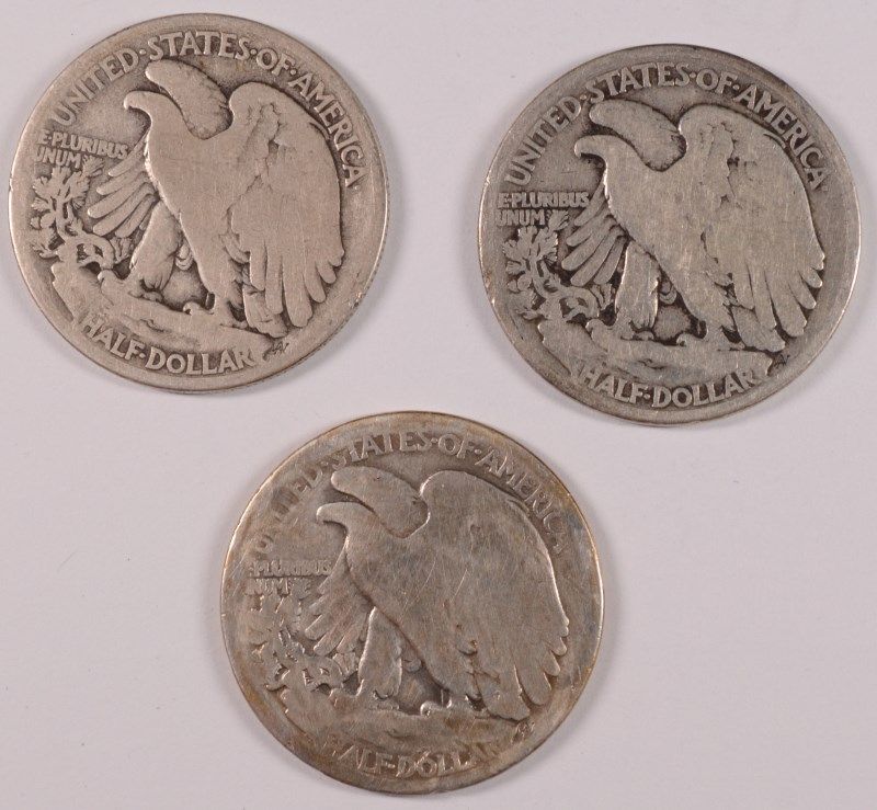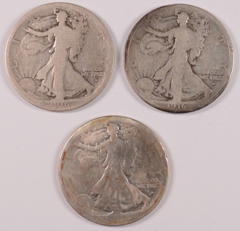 ( 3 ) 1916-D WALKING LIBERTY HALF DOLLARS, NICE CIRCULATED