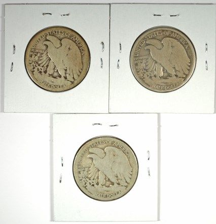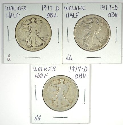 (3) 1917-D OBV WALKING LIBERTY HALF DOLLARS "GRADING SET" (AG,GOOD,VG)
