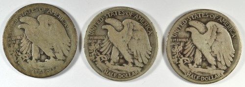 3- 1917-S OBV WALKING LIBERTY HALF DOLLARS "GRADING SET" (AG,GOOD,VG)