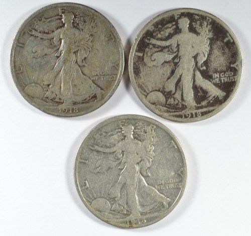 3-1918 WALKING LIBERTY HALF DOLLARS "GRADING SET" (GOOD,VG,FINE)
