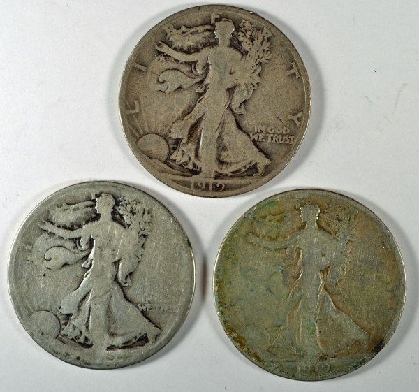3-1919-S WALKING LIBERTY HALF DOLLARS "GRADING SET" (AG,GOOD, VG)
