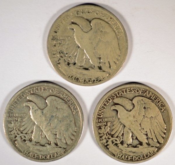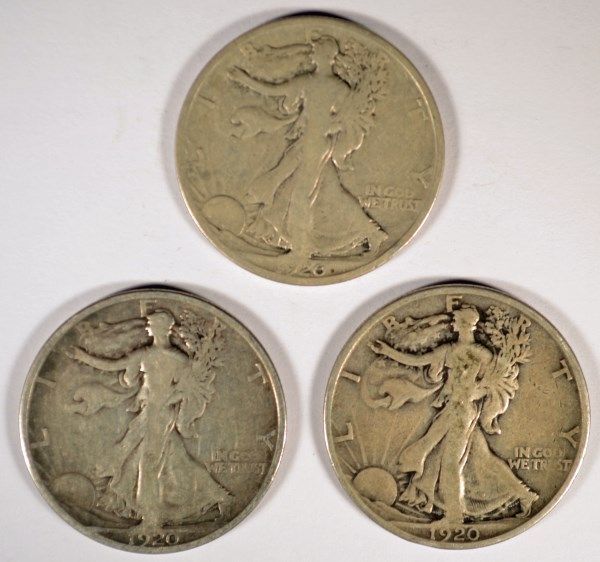 3-1920-S WALKING LIBERTY HALF DOLLARS "GRADING SET" (GOOD,VG,FINE)