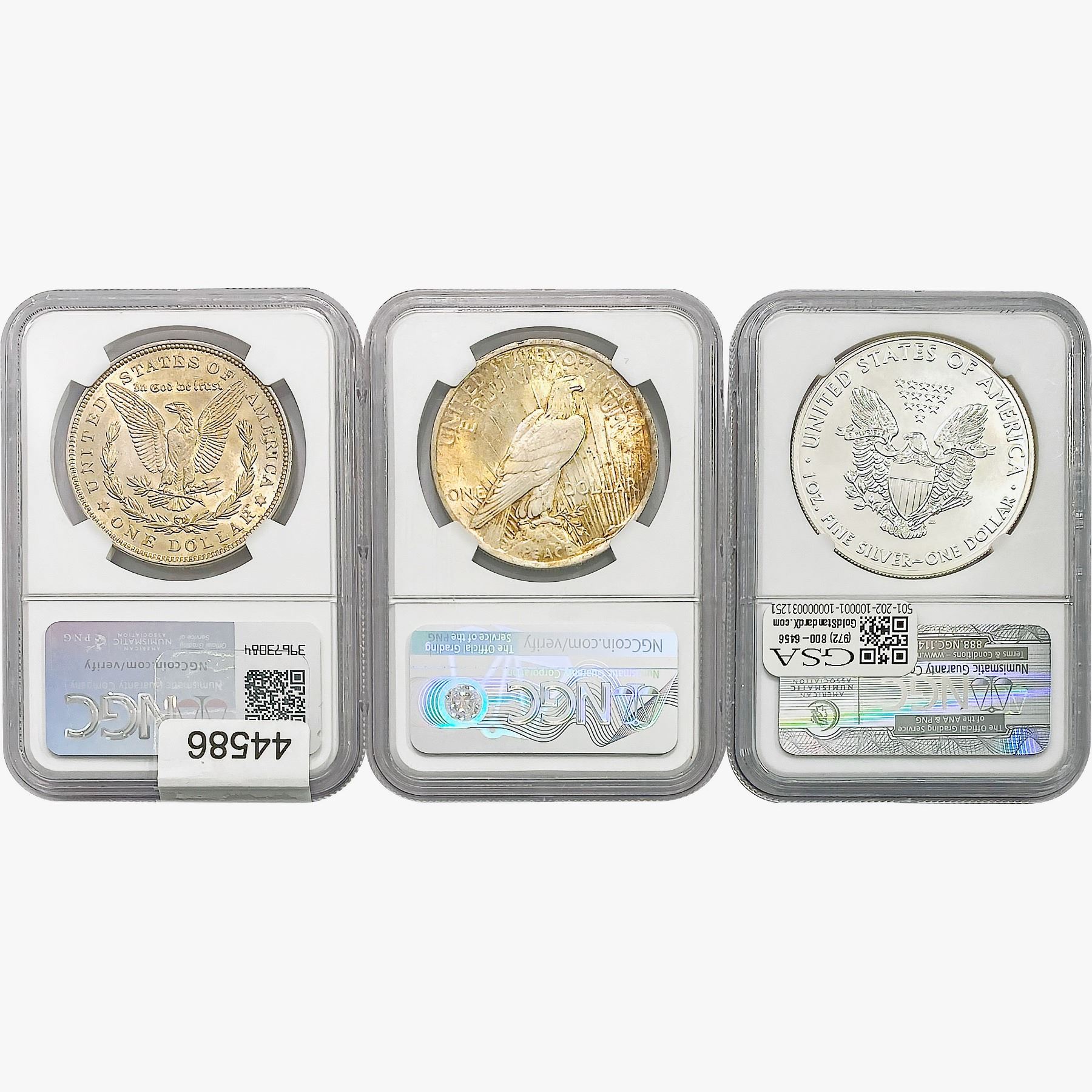 [3] 1921-2015 Various US Silver Dollar Coins NGC MS62/70