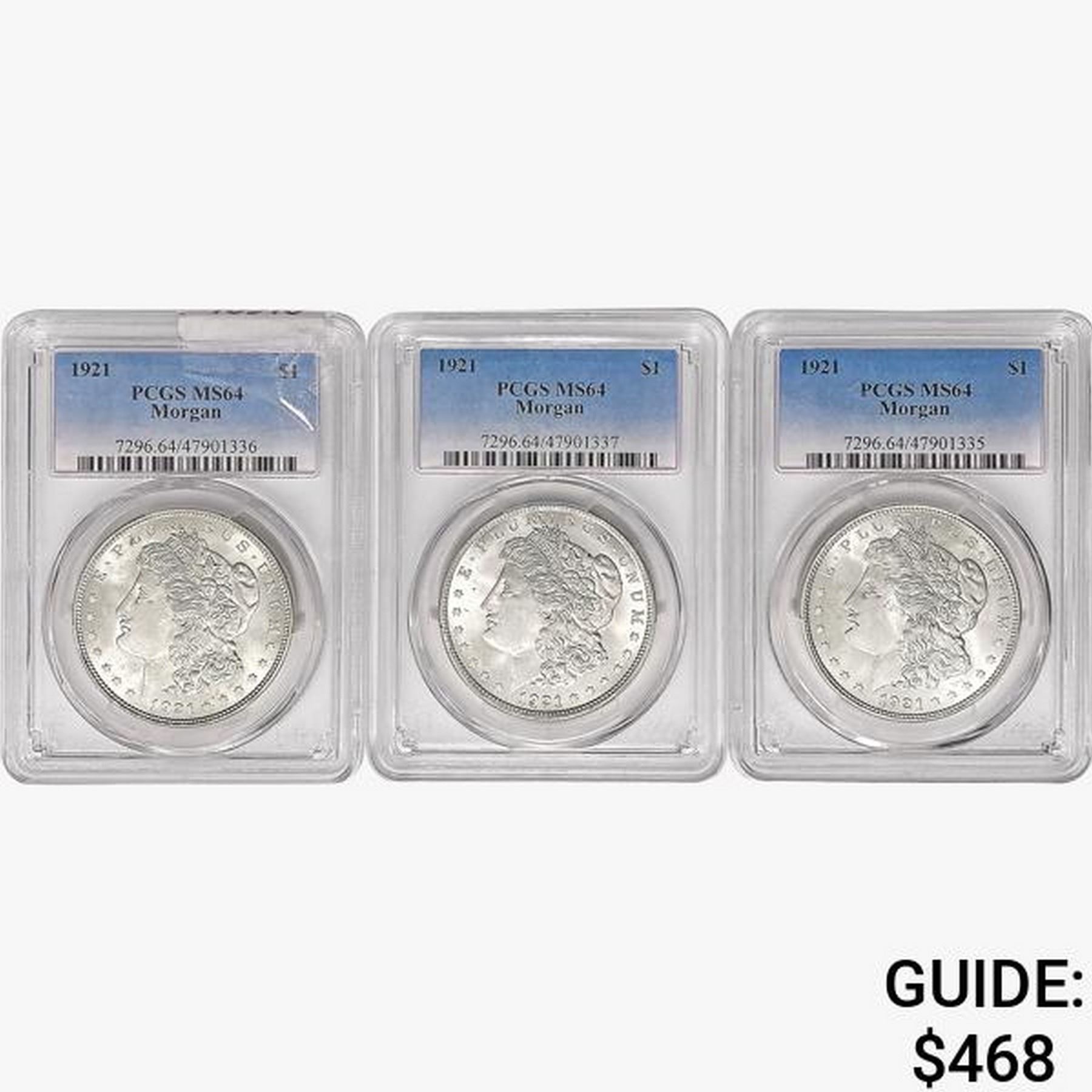 [3] 1921 Morgan SILV Dollars PCGS MS64