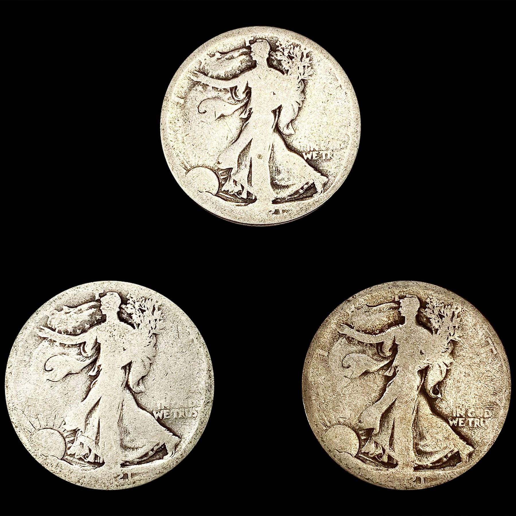 (3) 1921-S Walking Half Dollars NICELY CIRCULATED