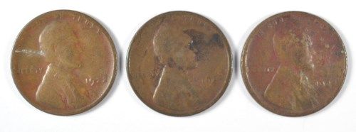 3-1922-D LINCOLN CENTS "GRADING SET" (AG,GOOD,VG)
