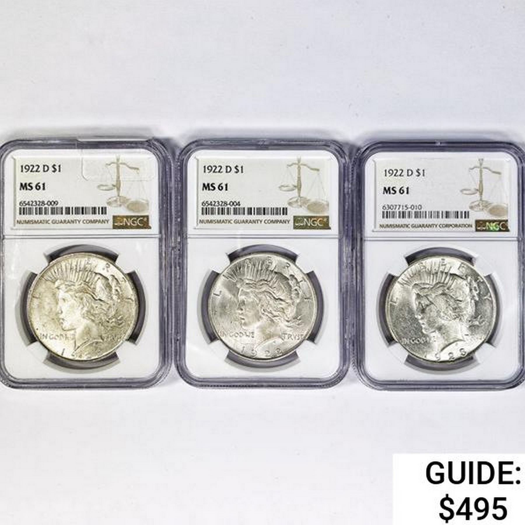 [3] 1922-D Peace Silver Dollar NGC MS61