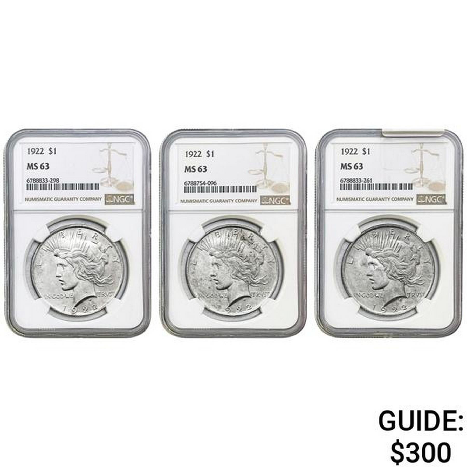 [3]1922 Silver Peace Dollar NGC MS63
