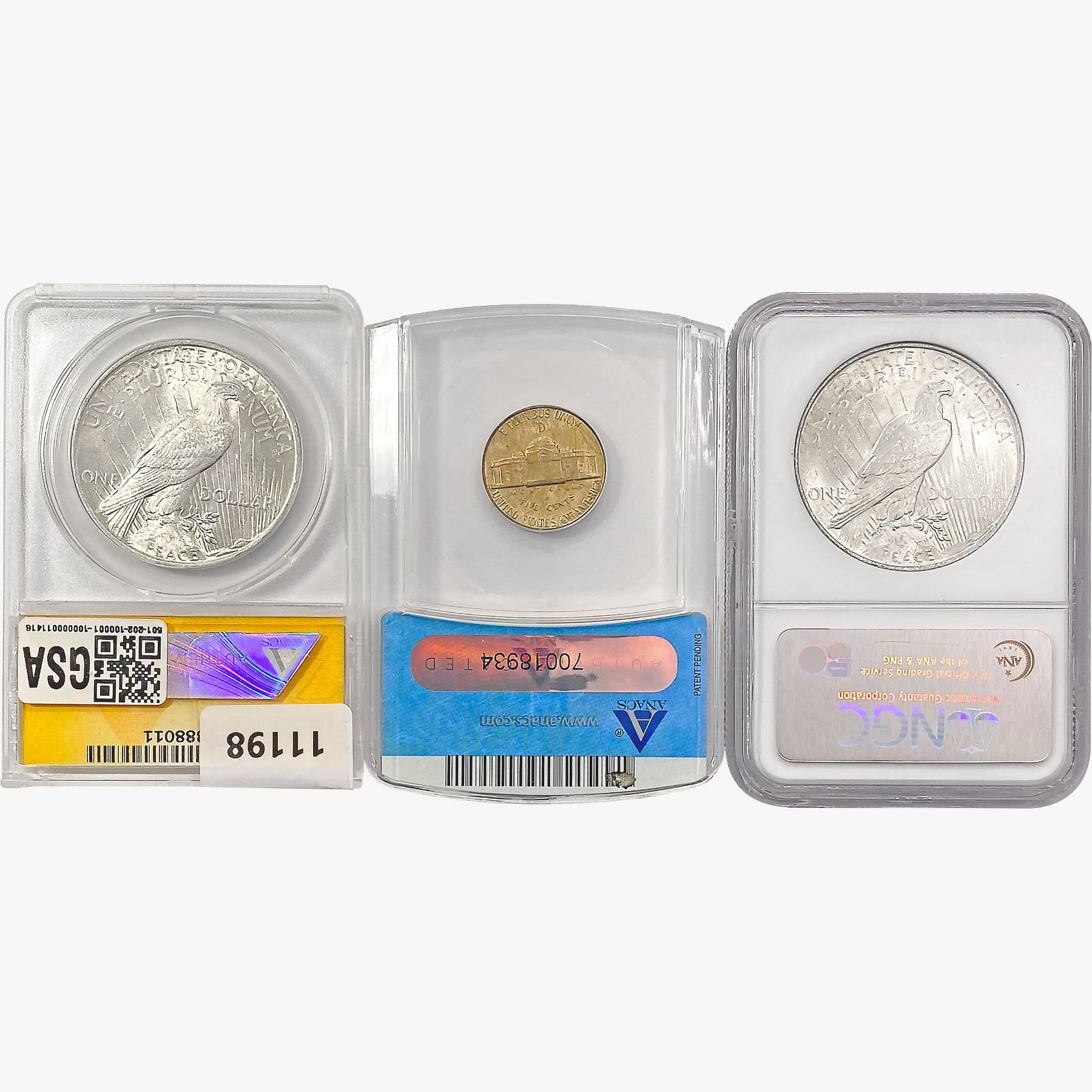 [3] 1923 & 1943 2 $1, 1 5C NGC,ANACS MS