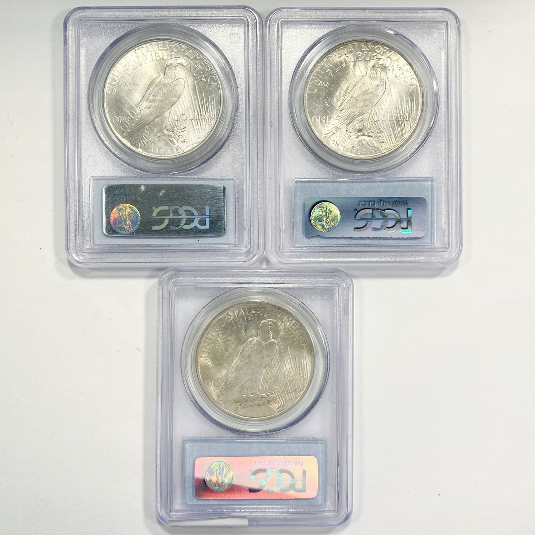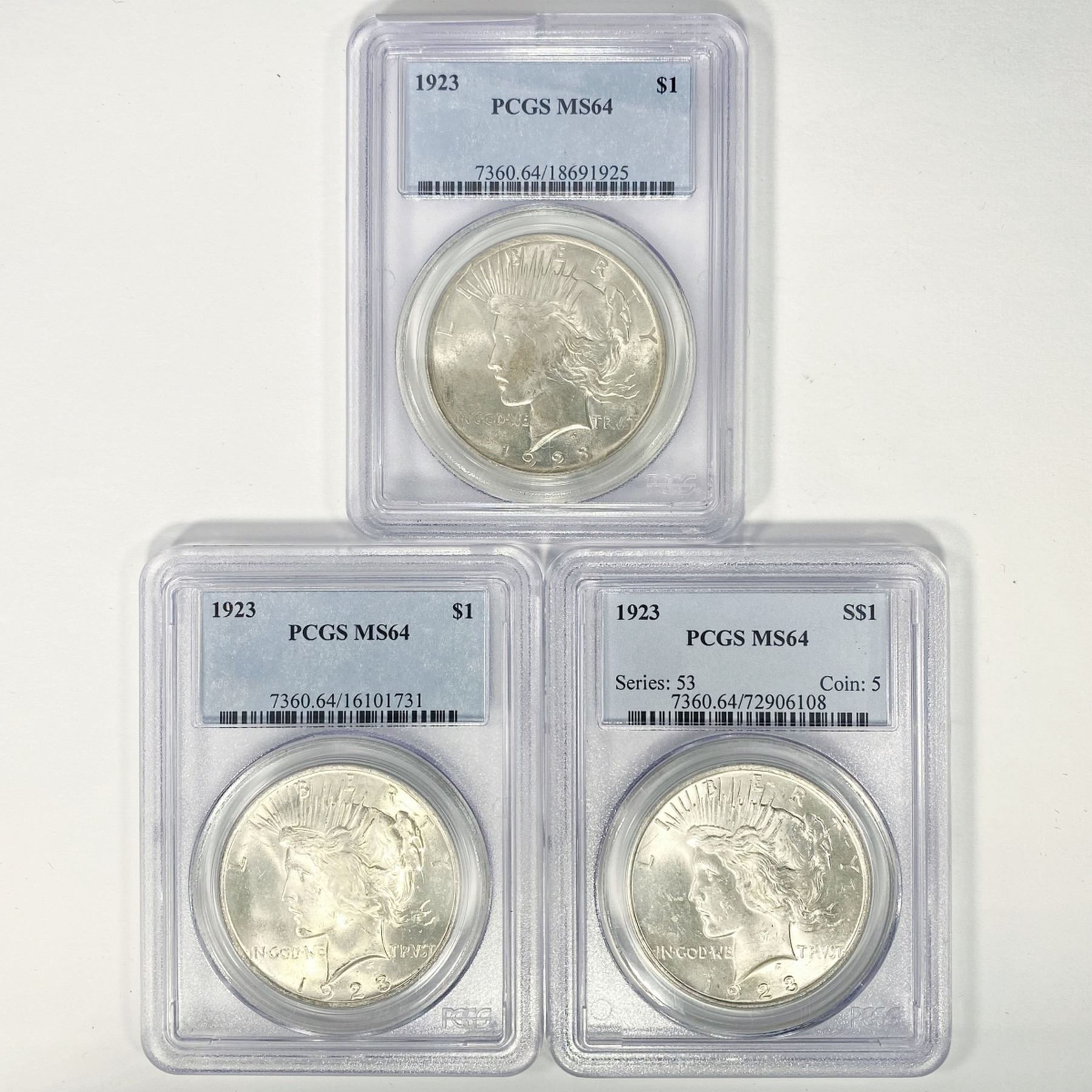 (3) 1923 Peace Silver Dollars PCGS MS64