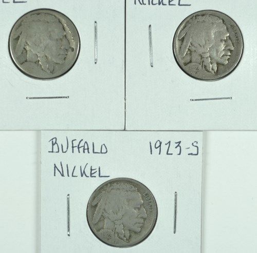 3-1923-S BUFFALO NICKELS "GRADING SET" (AG,GOOD,VG)