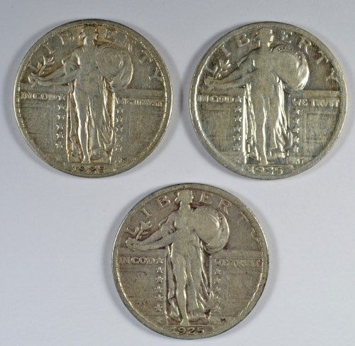 3-1925 STANDING LIBERTY QUARTERS "GRADING SET" (VG,FINE,VF)