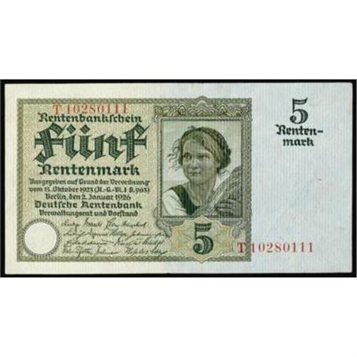 <style type="text/css"> body, td, th { font-family: Arial, Helvetica, sans-serif; font-size: 12px; color: #482424; margin: 0px; padding: 0px; } #header { background-image: url(http://www.bowersandmerena.com/ebay/images/template_v3_01.gif); clear: both; background-color: #590303; border-top-width: 2px; border-top-style: solid; border-top-color: #B38C4F; } #header #header_wrapper { height: 75px; clear: both; width: 800px; margin-right: auto; margin-left: auto; background-image: url(http://www.bowersandmerena.com/ebay/images/template_v3_03.gif); background-repeat: no-repeat; background-position: right; color: #F3EDCC; } #header #header_wrapper #header_logo { float: left; height: 75px; width: 444px; background-image: url(http://www.bowersandmerena.com/ebay/images/template_v3_02.gif); background-repeat: no-repeat; font-size: 10px; text-transform: capitalize; color: #B38C4F; } #header #header_wrapper #header_right { float: left; height: 75px; width: 356px; text-align: right; } #header #header_wrapper #header_right #headerLoginBtn { margin-bottom: 30px; } #header #header_wrapper #header_right input#txtSearch { color: #B49056; border: 1px solid #B49056; width: 175px; padding-top: 3px; padding-right: 3px; padding-bottom: 4px; padding-left: 3px; } #nav { height: 37px; background-image: url(http://www.bowersandmerena.com/ebay/images/template_v3_05.gif); clear: both; } #nav #nav_wrapper { height: 35px; width: 800px; margin-right: auto; margin-left: auto; border-left-width: 1px; border-left-style: solid; border-left-color: #B38C4F; } #nav #nav_wrapper a { padding-right: 15px; padding-left: 15px; border-right-width: 1px; border-right-style: solid; border-right-color: #B38C4F; height: 25px; padding-top: 10px; display: block; float: left; text-decoration: none; font-weight: bold; color: #5D0303; } #nav #nav_wrapper a:hover { color: #B38C4F; } #nav #nav_wrapper #search { float: right; padding-top: 7px; } #nav #nav_wrapper #search #txtSearch { font-family: Arial, Helvetica, sans-serif; font-size: 10px; text-transform: uppercase; color: #D2AE75; border: 1px solid #B38C4F; padding: 3px; } #content_bgd { background-image: url(http://www.bowersandmerena.com/ebay/images/template_v3_09.gif); background-repeat: repeat-y; background-position: center; padding-top: 15px; padding-bottom: 15px; background-color: #FBFBDB; } #content_wrapper { clear: both; height: auto; width: 800px; margin-right: auto; margin-left: auto; } .LotDetailWhite { line-height:normal; font-size:13px; font-family: arial,helvetica,sans-serif; color: White; font-weight: bold; } .LotDetailInformation { line-height:normal; font-size: 13px; font-family: arial,helvetica,sans-serif; } .LotDetailMessage { line-height:normal; font-size: 13px; font-family: arial,helvetica,sans-serif; color: red; } } tr.HeaderAuctionTitle td { color: #000000; font-weight: bold; padding: 2px; background-image: url(http://www.bowersandmerena.com/ebay/images/template_v3_05.gif); background-repeat: repeat-x; border-bottom-width: 1px; border-bottom-style: solid; border-bottom-color: #B38C4F; } table.AuctionSummary a, table.AuctionSummary a:link, table.AuctionSummary a:visited { color: #0000FF; text-decoration: none; } } td.tableHeaderLeft { border-left-width: 1px; border-left-style: solid; border-left-color: #B38C4F; } td.tableHeaderRight { border-right-width: 1px; border-right-style: solid; border-right-color: #B38C4F; } td.tableCellMiddle { border-left-width: 1px; border-left-style: solid; border-left-color: #B38C4F; border-right-width: 1px; border-right-style: solid; border-right-color: #B38C4F; padding: 5px; } tr.footer td { border-top-width: 1px; border-top-style: solid; border-top-color: #B38C4F; } </style> </head> <body> <div id="header"> <div id="header_wrapper"> <div id="header_logo"> </div> <div id="header_right"> </div> </div> </div> <div id="nav"> <div id="nav_wrapper"> <a href="http://www.bowersandmerena.com">Our eBayLive Auctions</a> <a href="#PaymentInfo">Payment Information</a> <a href="#ShippingInfo">Shipping Information</a> <a href="#About">About Bowers and Merena</a> </div> </div> <div id="content_bgd"> <div id="content_wrapper"> <table width="100%" border="0" cellpadding="5" cellspacing="0" class="AuctionSummary"> <tbody> <tr class="HeaderAuctionTitle" style="height: 25px;"> <td align="left" class="tableHeaderLeft" > </td> <td align="center" class="tableHeaderRight"> <span style="font-size: large;">Lot #2779. Germany. Lot of (3) 1926 5 Rentenmark. Rentenbank Rentenmarkschein Issues. Fine/AU.</span> </td> </tr> <tr> <td colspan="3" class="tableCellMiddle"> P-169. Here are three notes from the 1925-26 issue that are more easily attained although not in high grade. The three notes here are a nice spread of condition with one being a Fine another a Very Fine and lastly a sharp looking about Uncirculated example.