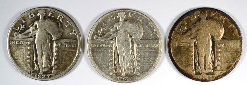 3- 1927-D STANDING LIBERTY QUARTERS "GRADING SET" (AG,VG,FINE)