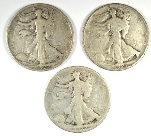 (3) 1927-S WALKING LIBERTY HALF DOLLARS "GRADING SET" (GOOD,VG,FINE)
