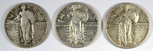 3-1928 STANDING LIBERTY QUARTERS "GRADING SET" (VG,FINE,VF)