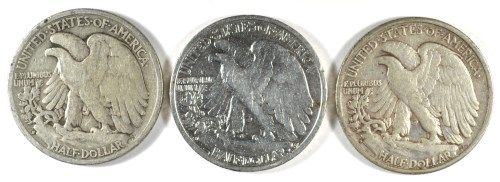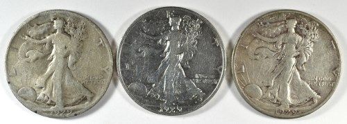 3-1929-S WALKING LIBERTY HALF DOLLARS "GRADING SET" (GOOD,VG,FINE)