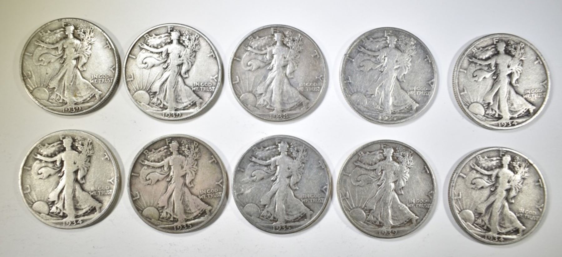 3-1934, 3-1935, 1-38,3-39 WALKING LIBERTY HALVES