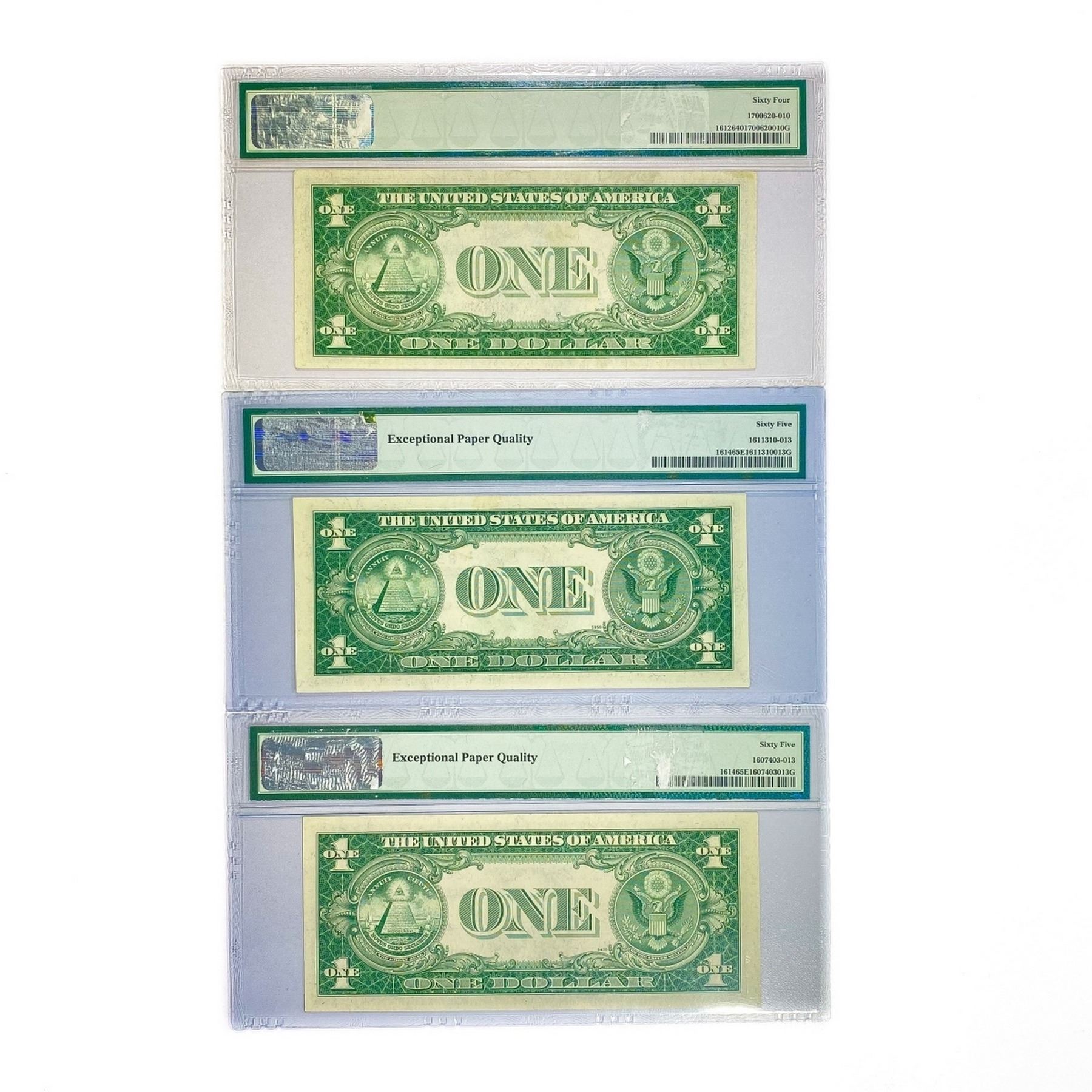 f. Notes sold referencing a third-party grading service are sold “AS IS” without any express or implied warranty, except for guarantee by GSA that they are genuine. Grading, condition or other attributes of any Product may have a material effect on its value and the opinion of others, including third-party grading services such as PCGS Currency and PMG may differ with that of GSA. GSA shall not be bound by any prior or subsequent opinion, determination, or certification by any grading service. Bidders specifically waive any claim to right of return of any Product because of the opinion, determination, or certification, or lack thereof, by any grading service. Certain warranties may be available from the grading services and Bidders are referred to them for further details: Paper Money Guaranty (PMG), PO Box 4711, Sarasota, FL 34230; PCGS Currency, PO Box 10470, Peoria, IL 61612-0470; PCGS Gold Shield, PO Box 9458, Newport Beach, CA 92658. Third-party graded notes are not returnable for any reason whatsoever.