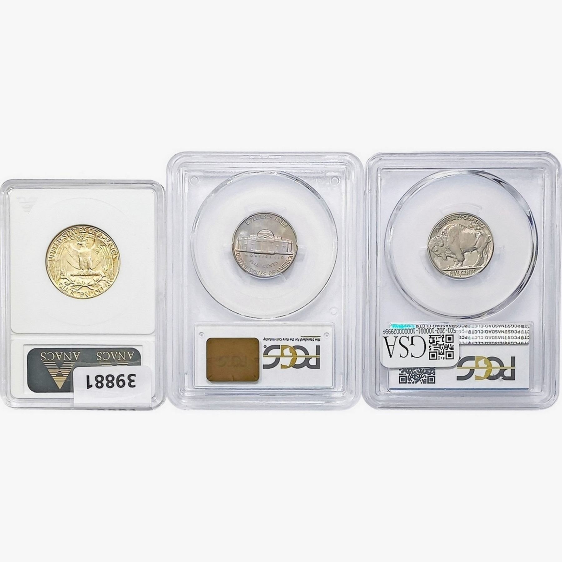 [3] 1936-1938 2 5C, 1 25C ANACS/PCGS MS64/66