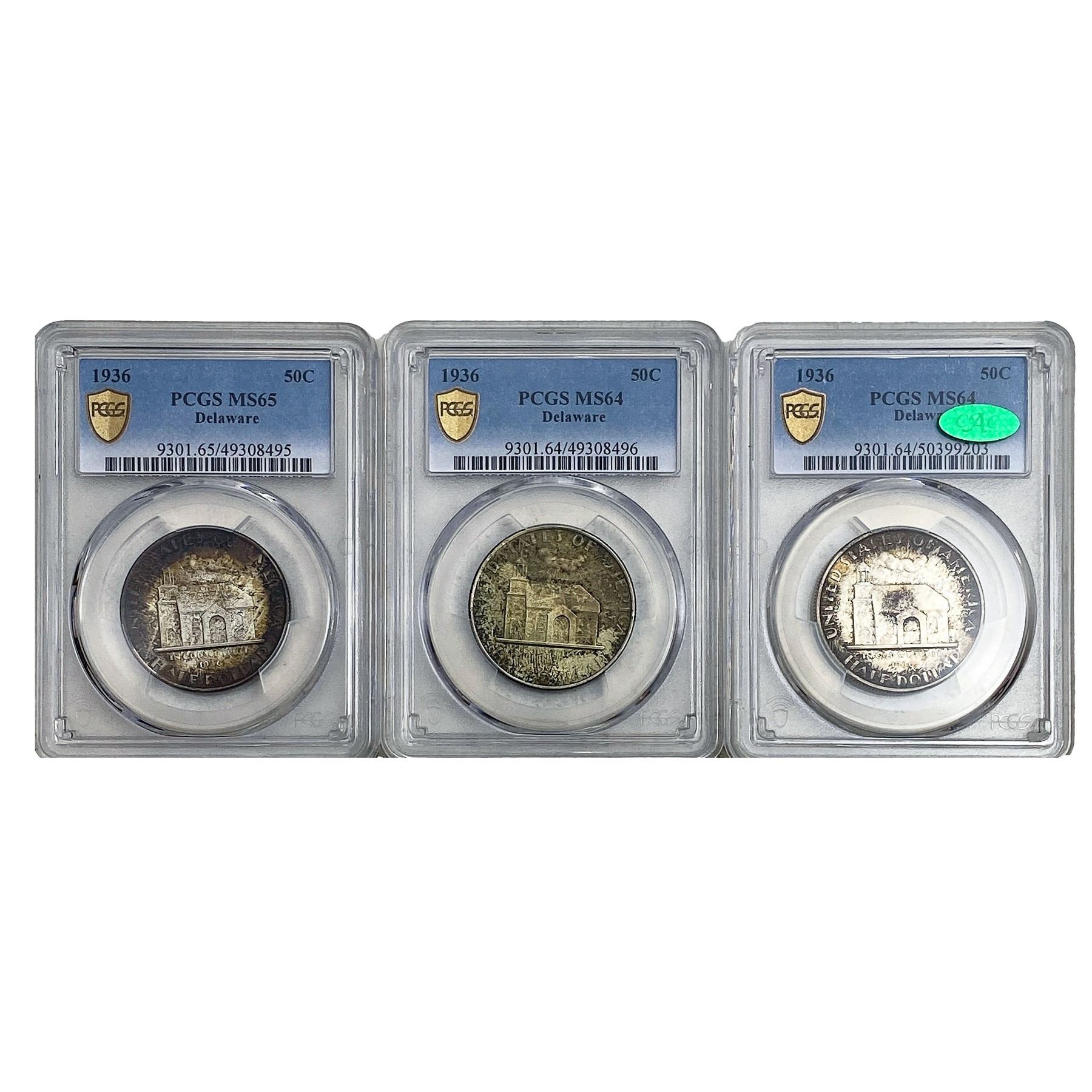 [3] 1936 Delaware Half Dollar PCGS MS64-65 INCLD. CAC