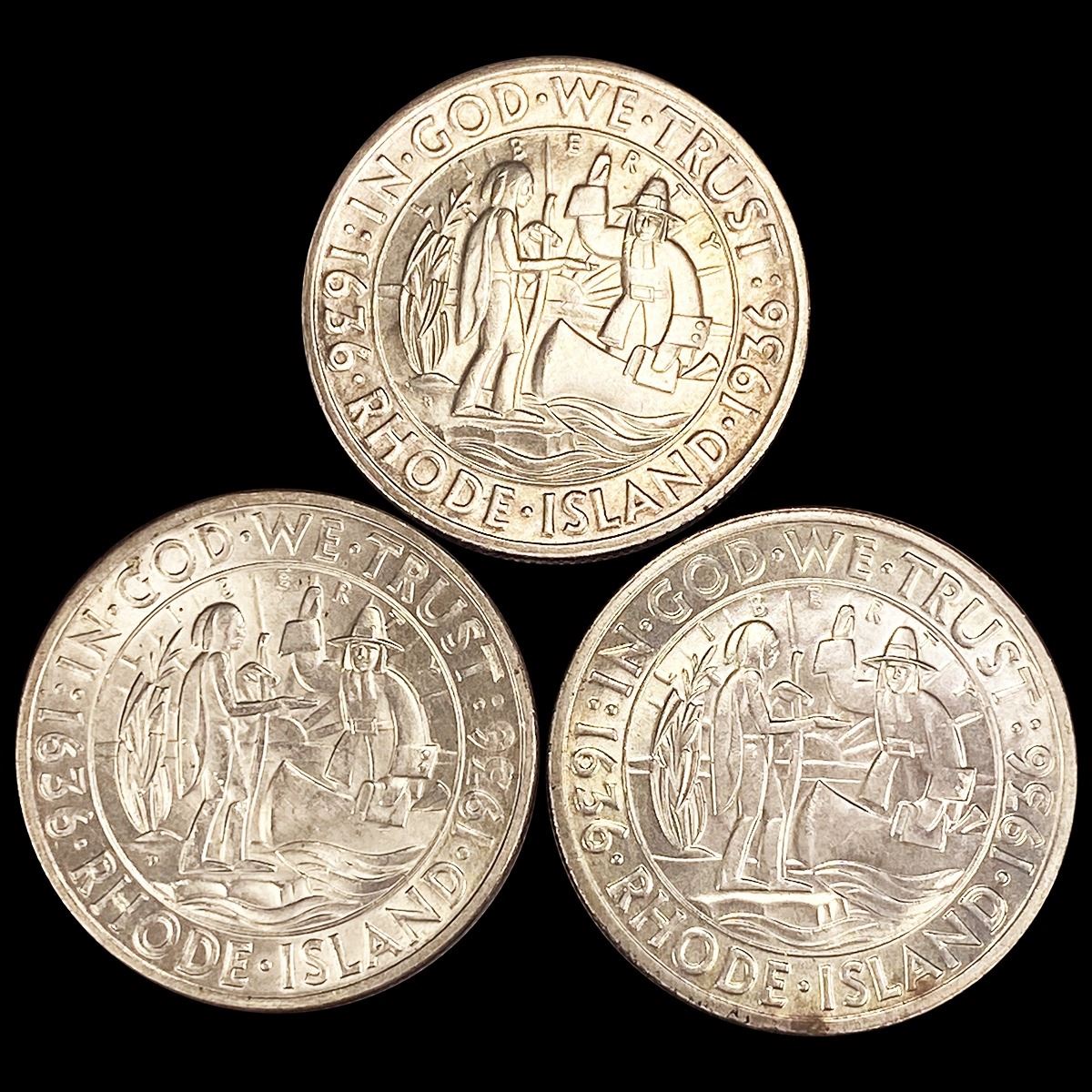 (3) 1936 PDS Rhode Isle. Half Dollars