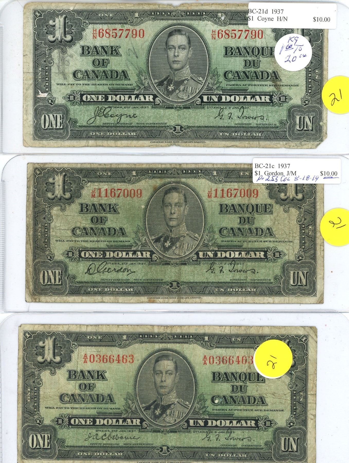 3 - 1937 $1 K.G. Dollar Bill All 3 Sign Types