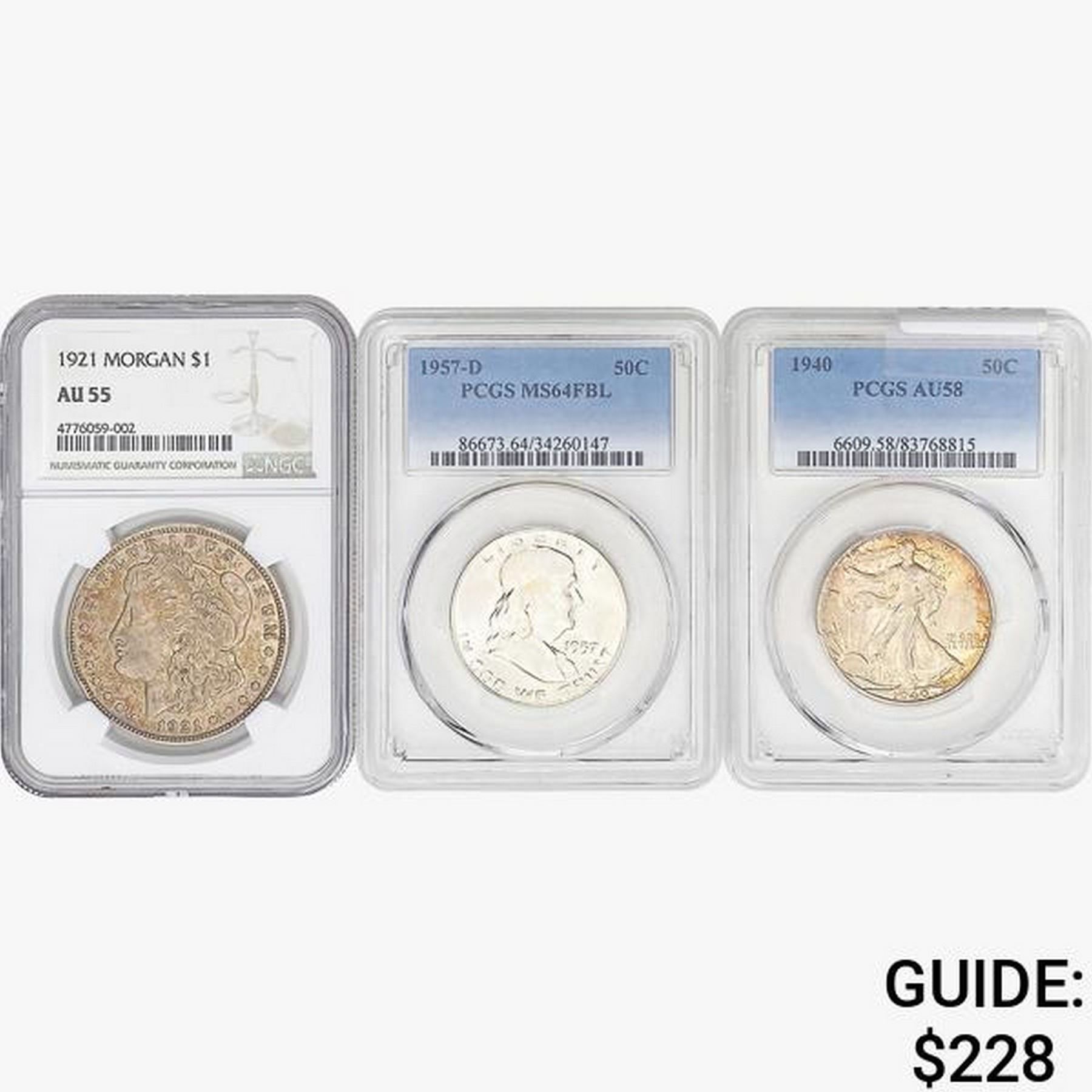 [3] 1940-1957 2 50C, 1 $1 NGC/PCGS AU/MS